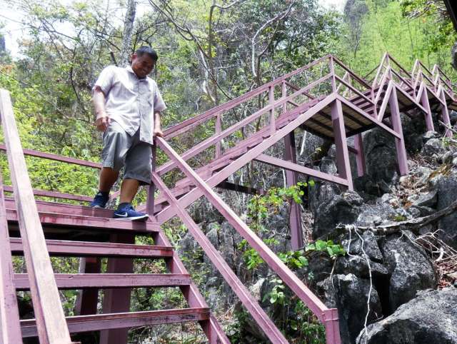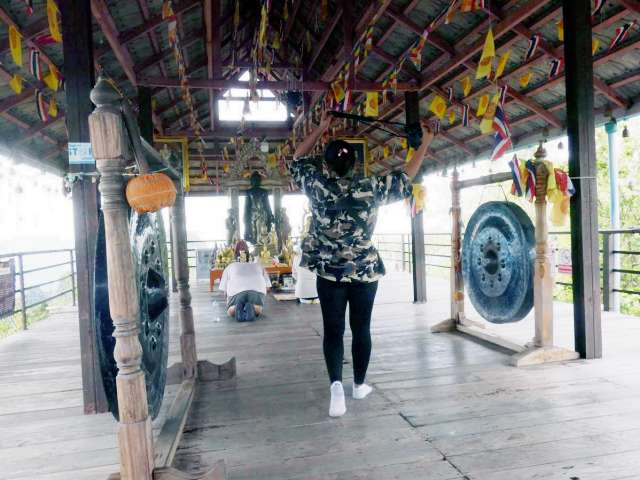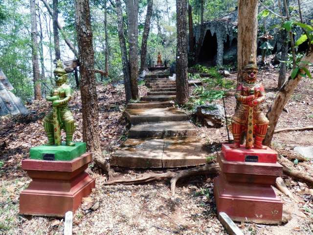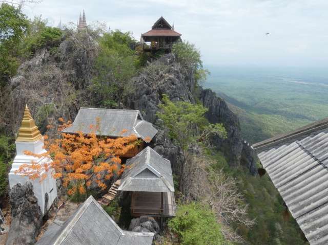 In diesen Tempeln ist man dem Himmel näher! Das Auto muss auf dem Parkplatz abgestellt werden und dann beginnt eine Tour von 15 Minuten mit dem Zubringer über eine kleine und kurvige Bergstraße Von dort sind es circa 800 Stufen über Steigen und Treppen zu den Pagoden. Oben erhält man eine fantastische Aussicht. Aber auch am Ausgangspunkt gibt es noch mehrere Tempel sowie Restaurants. Als wir dort waren, war es fast völlig leer.